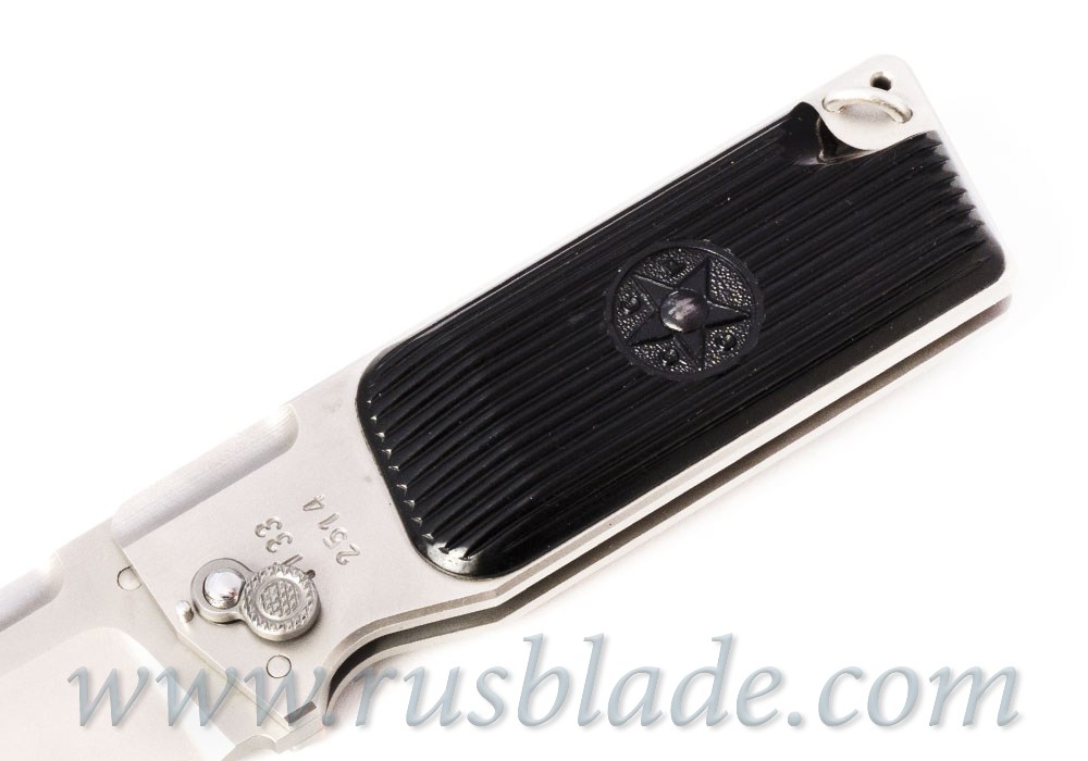 This is top new folding knife with special lock patented produced by master Urakov A.I. in Russia, Izhevsk. It's such an untypical folding knife,blade's length 100 mm, handle 120 mm, steel handle with plastic inlays taken from legendary USSR Tokarev 33 gun! The product line is very small, all knives Urakov made by himself, that's why it a FULL CUSTOM! New from master! Knife + case.